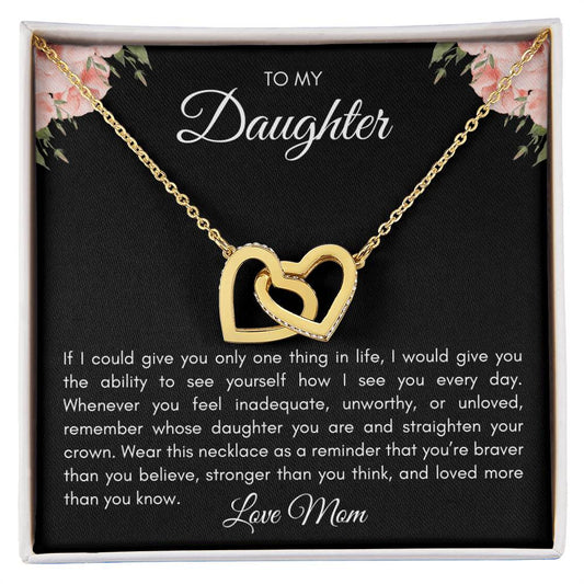 Hermoso collar con corazón entrelazado para mi hija y tarjeta con mensaje