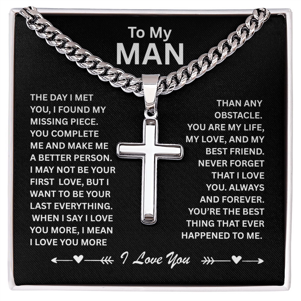 To My Man – Cuban Chain w/ Artisan Cross Necklace
